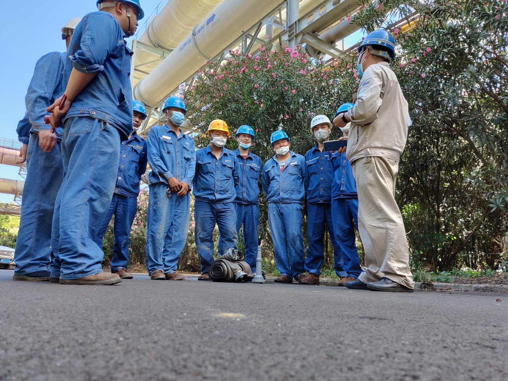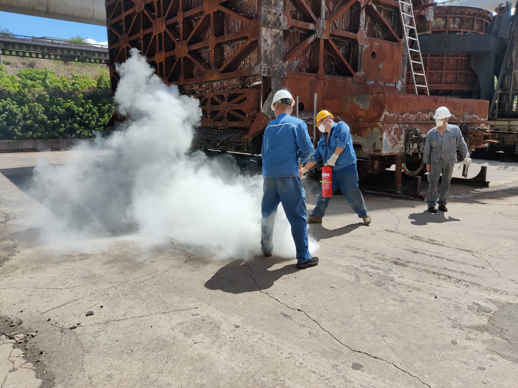 為了讓每一位員工深入了解消防應(yīng)急常識(shí),切實(shí)樹立消防意識(shí),真正掌握好火災(zāi)事故現(xiàn)場(chǎng)應(yīng)急撲救與救護(hù)的統(tǒng)籌作業(yè)流程;并具備自救互救與抗擊突發(fā)事件的應(yīng)變能力,能有組織、有順序、迅速地引導(dǎo)員工安全、快速地疏散,學(xué)會(huì)正確使用滅火器等消防設(shè)備以及掌握逃生方法。6月11日上午10點(diǎn),西昌藍(lán)鼎生產(chǎn)部長孫小剛、副部長王建勇、檢修班長王成東,帶領(lǐng)生產(chǎn)一線人員共計(jì)11人,在二煉焦車間積極參加西鋼釩煉鐵廠組織的2020年消防演練。